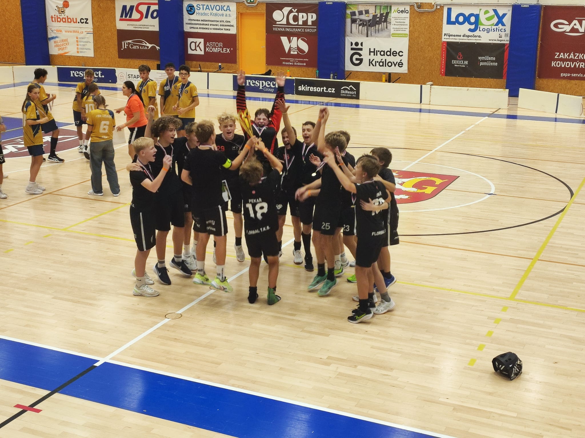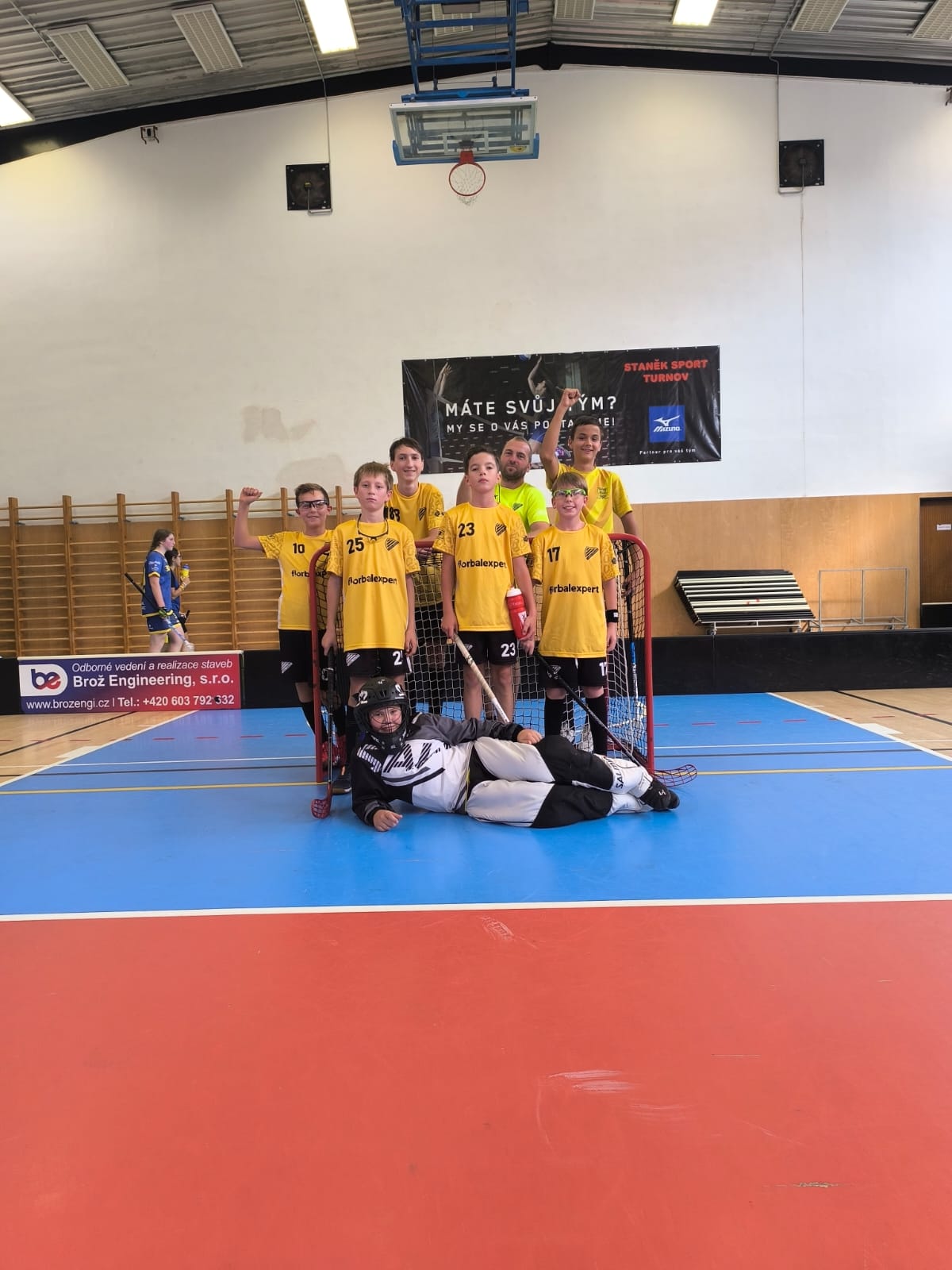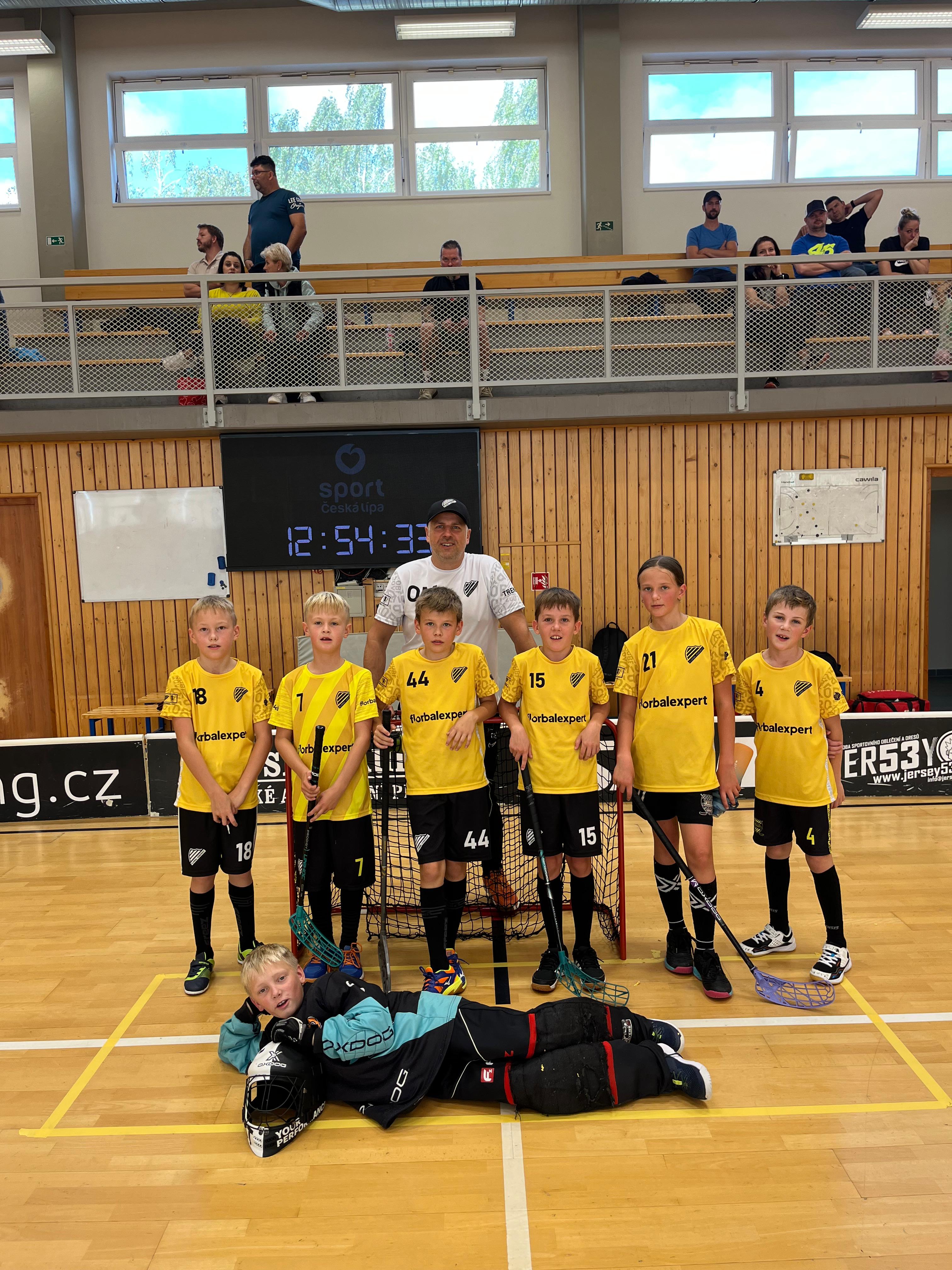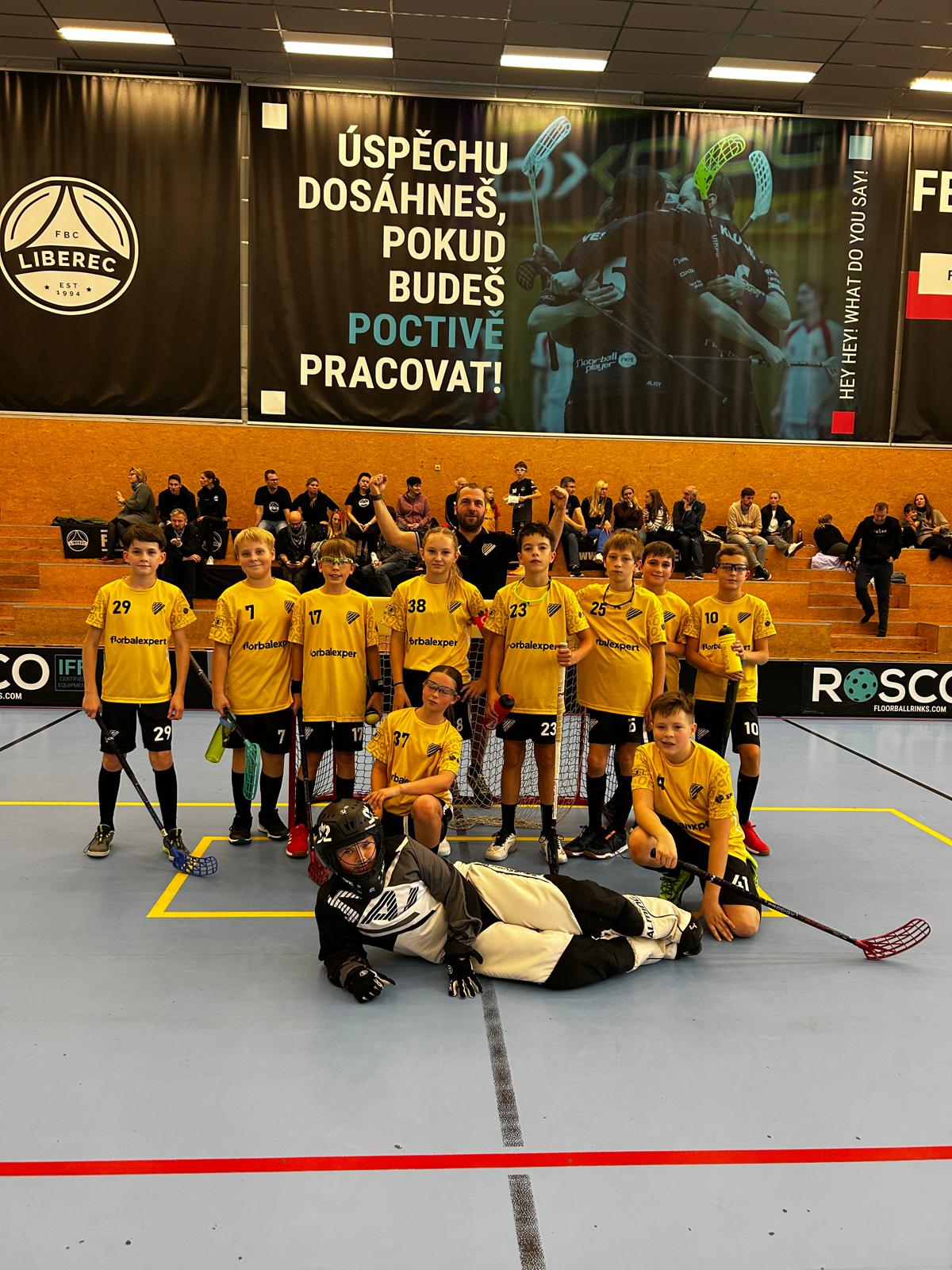 ,,V neděli 28.10. 2025 jsme sehráli se staršími žáky dvě partie. Tým posilněný mladšími žáky se velmi směle popasoval nejdříve s Mývaly ze Starého Harcova, ale i přes velmi kvalitní hru jsme utrpěli porážku 9:6. Druhé utkání proti týmu Jablonec Yellow jsme už opanovali výsledkem 7:3 a zaznamenali jsme první sezónní vítězství. Děkuji hráčům za bojovnost."