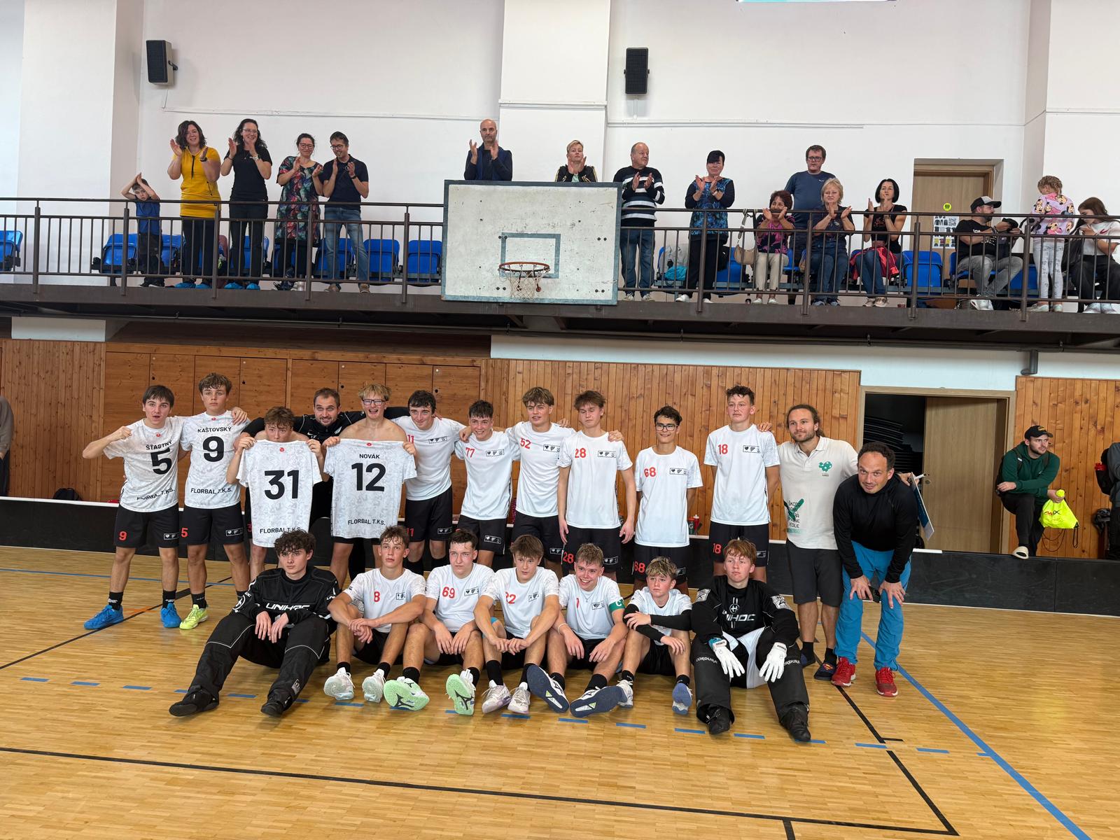 V sobotu 27. září se starší žáci T.K.S představili ve sportovní hale Florbalu Jirkov a odehráli tři výborné zápasy. Hned v úvodním utkání si tým s chutí zastřílel a porazil domácí Florbal Jirkov jednoznačně 7:0. Druhý zápas proti FBC Liberec B přinesl hodně branek a bojovný výkon, ale nakonec skončil porážkou 4:7. Do závěrečného duelu šli naši hráči s cílem odčinit prohru – a předvedli drama, na které se bude dlouho vzpomínat. Po remíze 1:1 následovaly nájezdy, které rozhodl až desátý pokus Tomáše Fabiana. TKS tak zvítězilo 2:1 a potvrdilo bojovného ducha. Turnaj ukázal, že tým má sílu hrát s kýmkoli a chuť se dál zlepšovat.