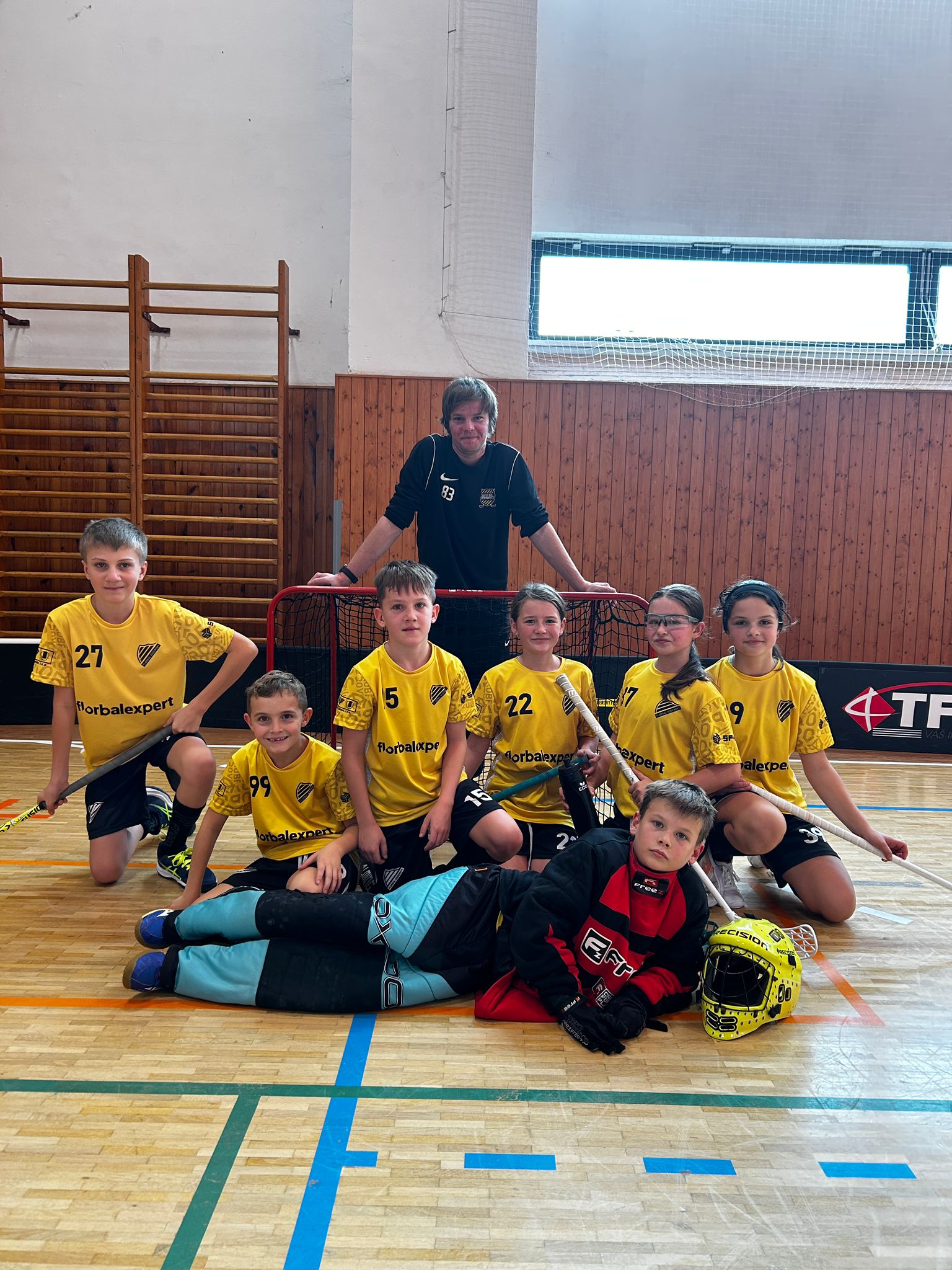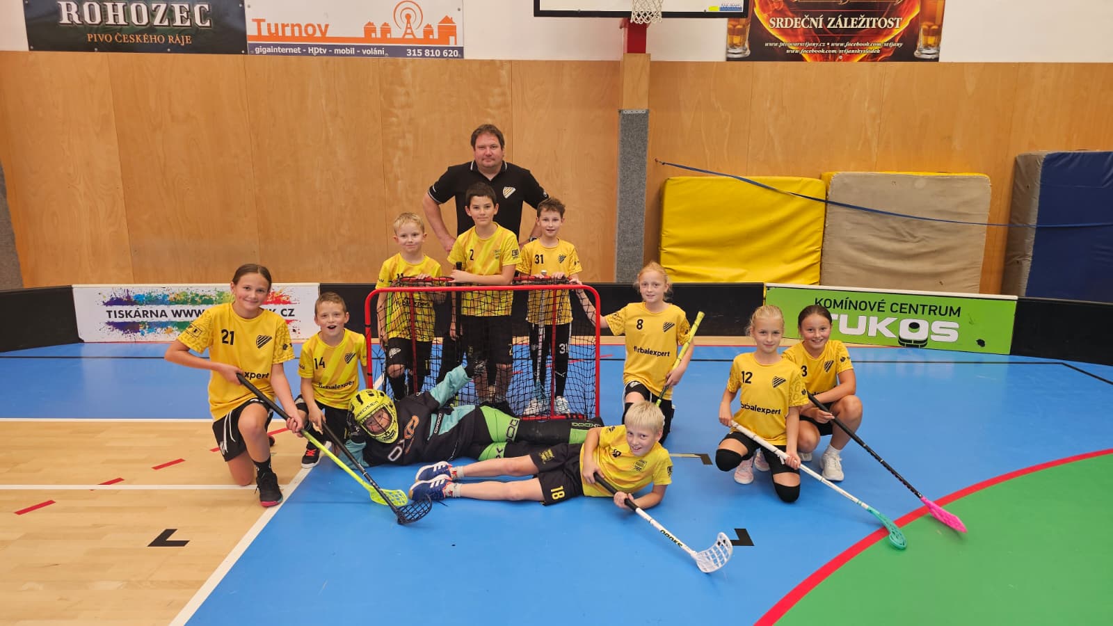 Turnaj zhodnotila trenérka Štěpánka: Naši nejmenší se vydali na druhý turnaj v neděli 19.10.2025 k sousedům do Turnova, kde se střetli s týmem domácích, oddílem FBC Liberec, FBC Česká Lípa a FLORBAL JABLONEC. I přes drobné šrámy bojovali, co jim síly stačily.